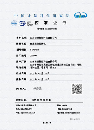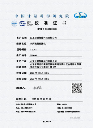 農(nóng)殘校準(zhǔn)證書(shū)